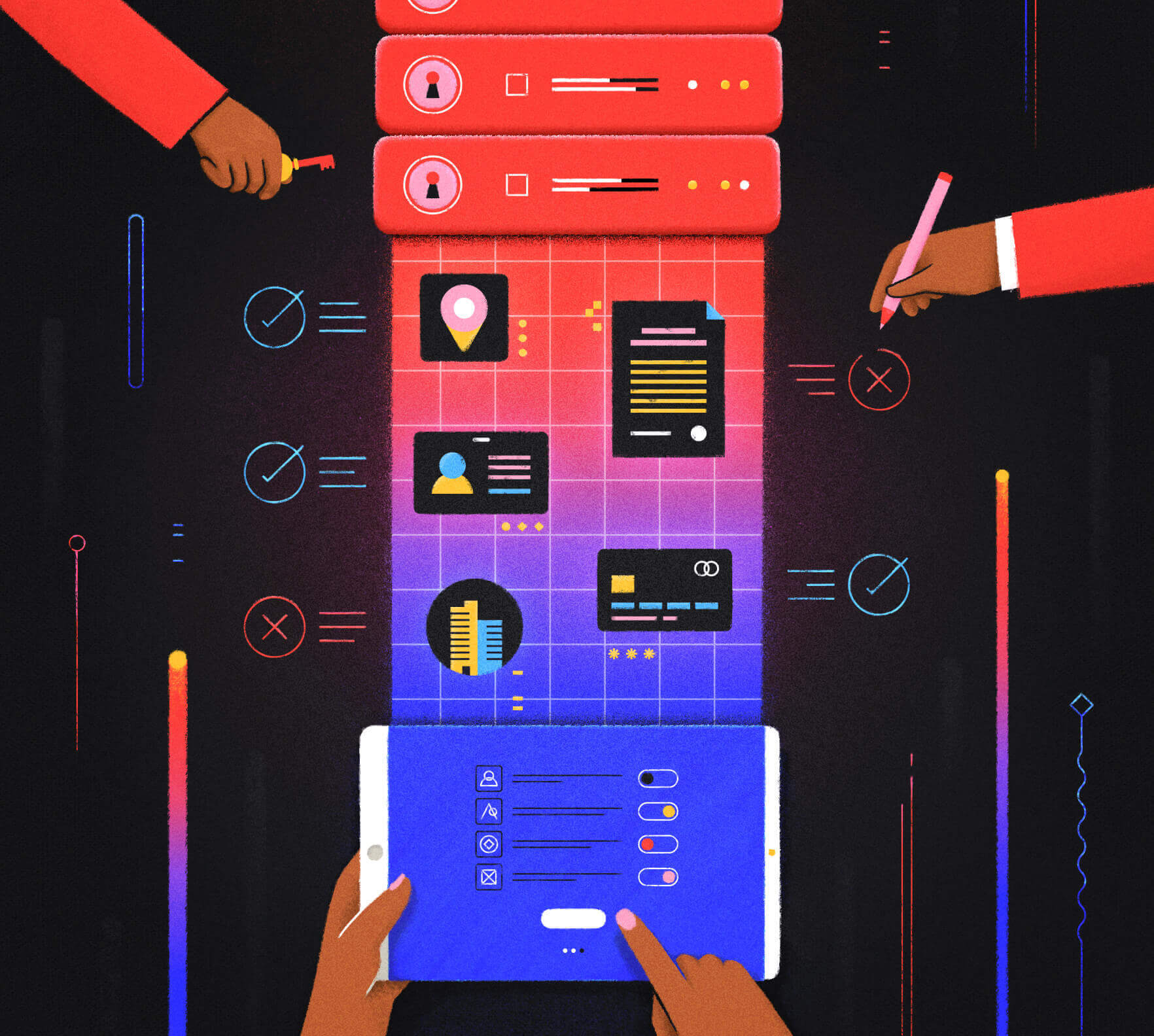 It includes all of the different cybersecurity practices you use to secure your data from misuse, like encryption, access restrictions (both physical and digital), and more.